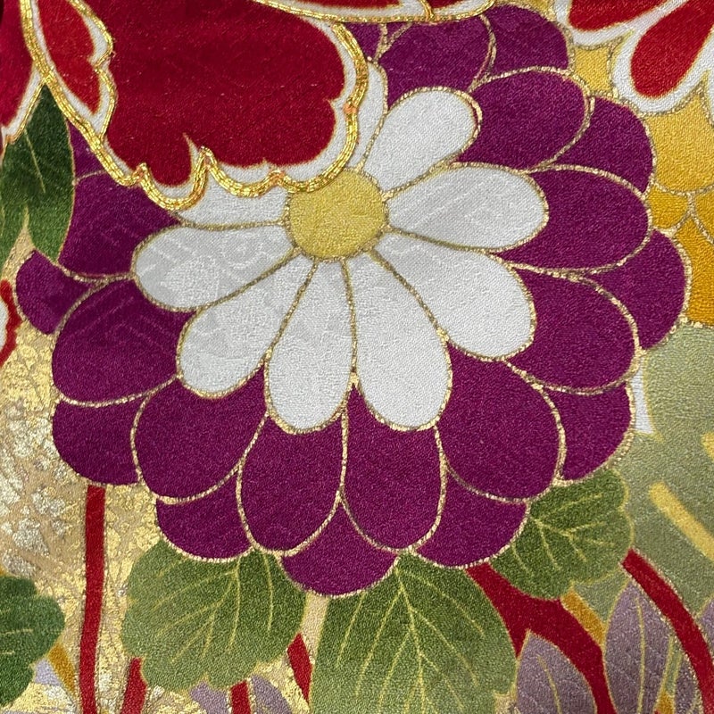 未婚女性の第一礼装としてお使いいただける振袖でございます。 お好みの帯や小物と合わせて晴れの日に相応しい華やかな装いにいかがでしょうか。 ※身丈・裄丈の縫込みの長さは測っておりません。 衿周りや両袖口中に薄汚れ、右袖前後と右胸にシワ、表地所々に金銀彩の剥がれ、表地所々に金銀彩の変色がございます。 胴裏背中心に縫い目のゆるみがございます。 リユース品としては良い状態で、まだまだご活用頂けると思われます。 ※なお、厳しく商品の状態確認を行っておりますが、記載の汚れ以外にも見落とし箇所がある可能性がある旨ご了承いただけますと幸いです。 沢山の商品の中からご覧いただき誠にありがとうございます。