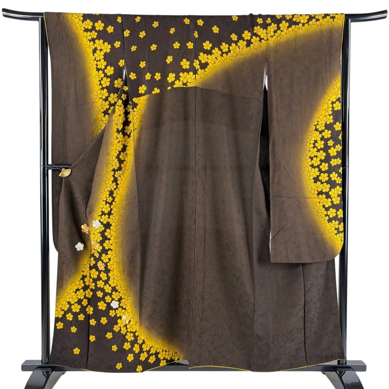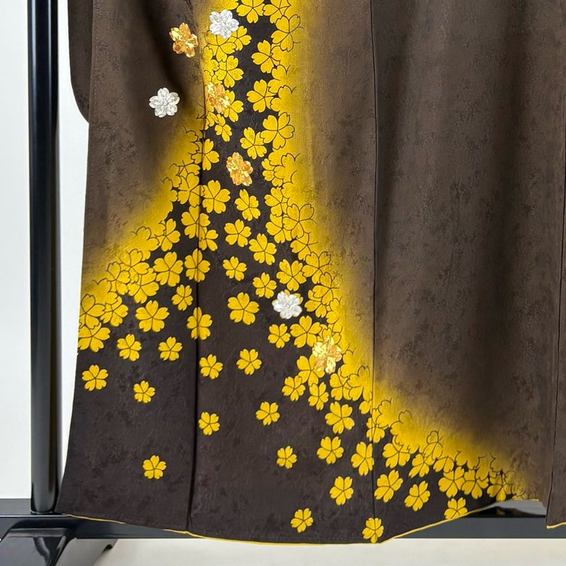 【振袖】 茶系 焦茶色 名品 B 約150cm~約159cm 裄丈65cm (M)size 袖丈91cm以上 9990-29990 二万以下