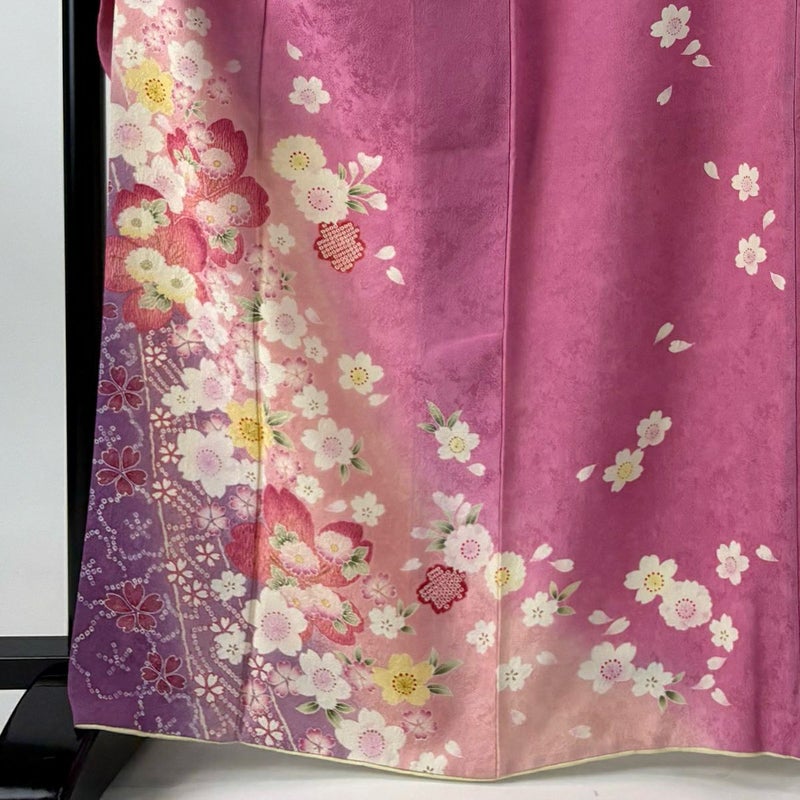 【振袖】 赤系 ピンク 名品 A 約160cm~約169cm 裄丈66cm (M)size 袖丈91cm以上 9990-29990 美品 二万以下