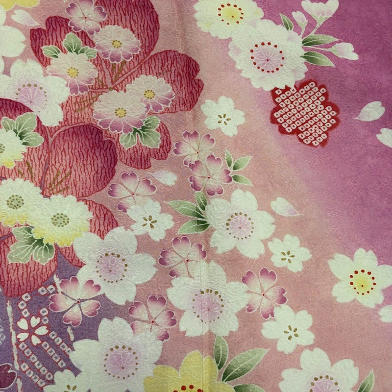 【着物ランク】名品 【素材】正絹 【身丈】約165.5cm 【裄丈】約66.5cm 【袖丈】約106cm 【袖幅】約34cm 【前幅】約24.5cm 【後幅】約30cm 【サイズ】M 【着物仕立て】袷 【着用時期】10~5月 【状態ランク】ランクA 【着物着用シーン】成人式、謝恩会