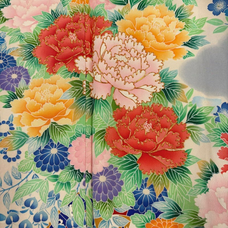 【振袖】 白系 クリーム 名品 C 約160cm~約169cm 裄丈62cm以下 (S)size 袖丈91cm以上 9990-29990 二万以下