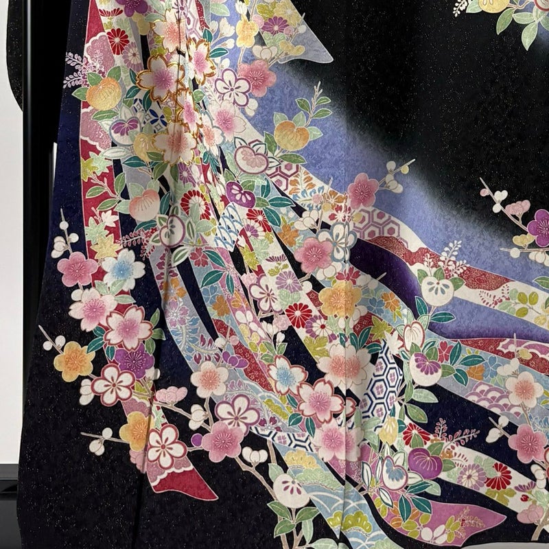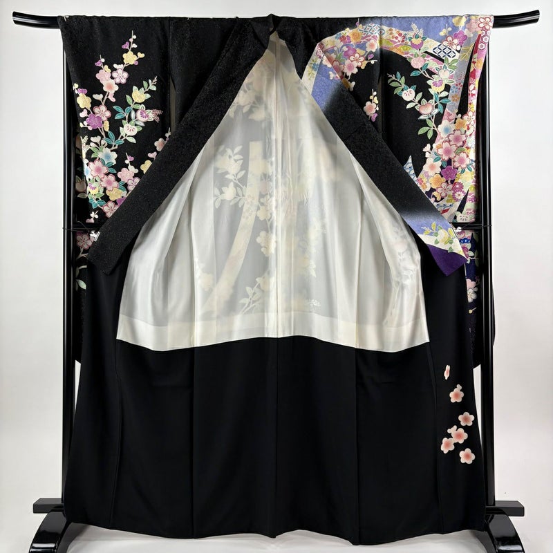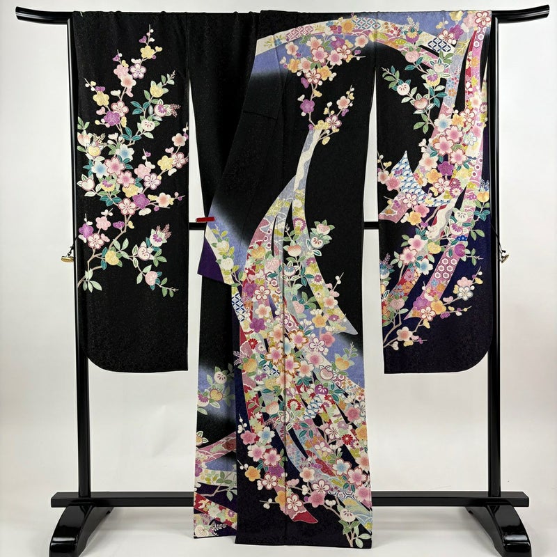 【振袖】 黒系 黒 逸品 B 約160cm~約169cm 裄丈67cm-68cm (L)size 袖丈91cm以上 30000- 五万以下