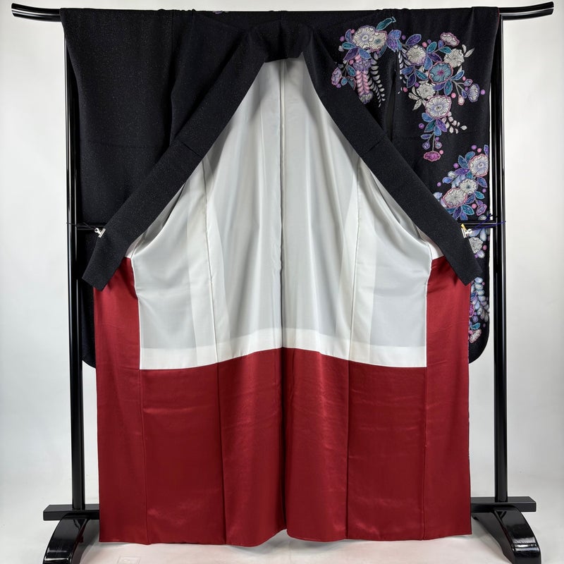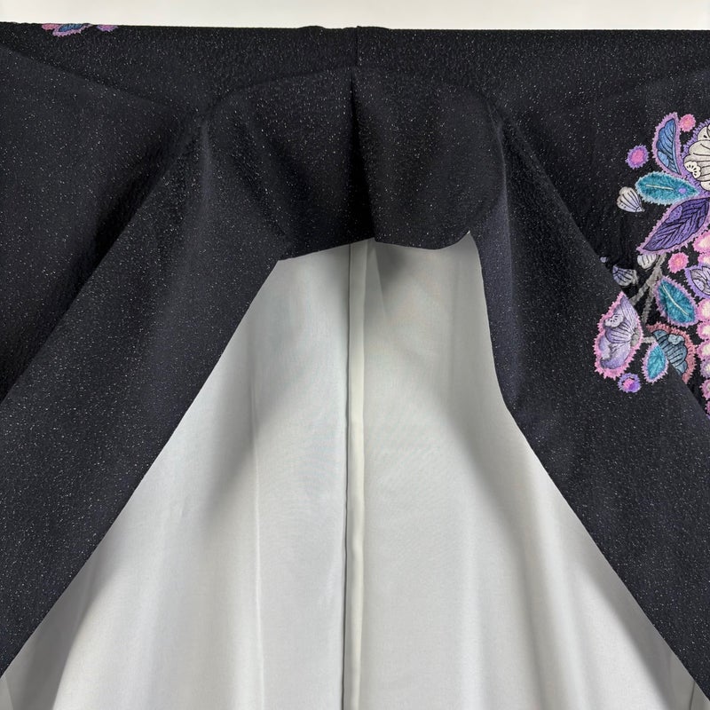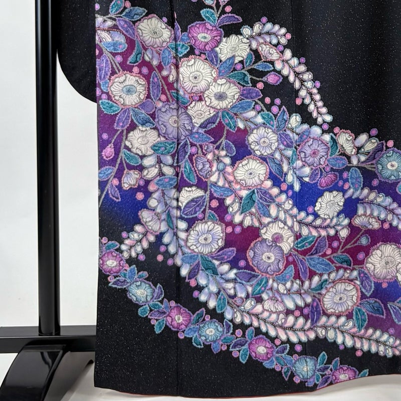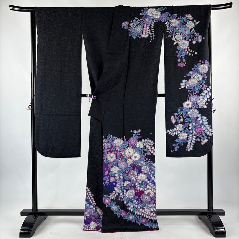 【振袖】 黒系 黒 逸品 A 約160cm~約169cm 裄丈67cm-68cm (L)size 袖丈91cm以上 30000- 美品 五万以下
