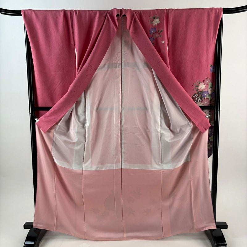 【振袖】 赤系 ピンク 秀品 A 約160cm~約169cm 裄丈69cm以上 (L)size 袖丈91cm以上 9990-29990 美品 二万以下