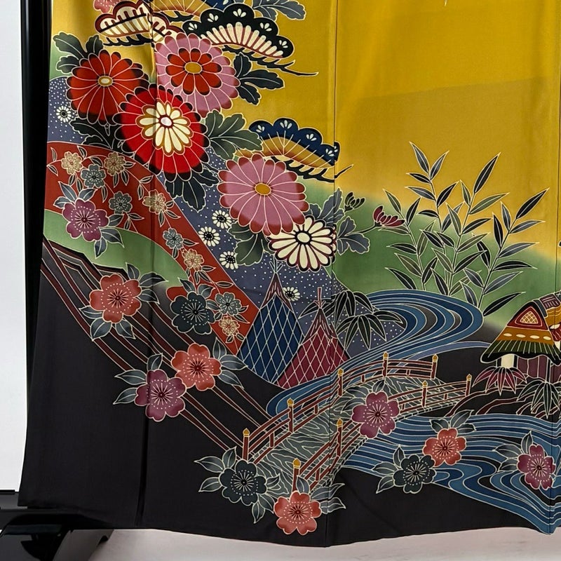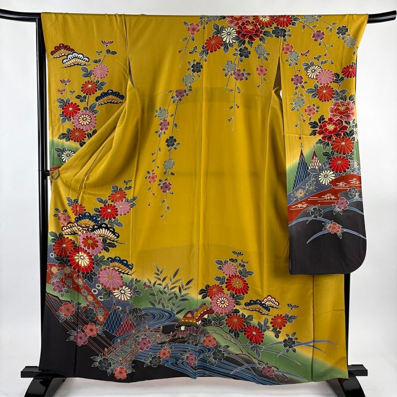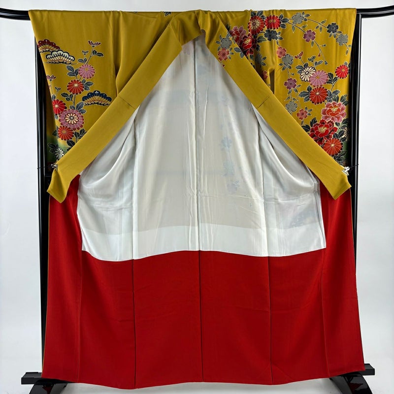 【振袖】 黄色系 黄土色 名品 B 約160cm~約169cm 裄丈67cm-68cm (L)size 袖丈91cm以上 9990-29990 二万以下
