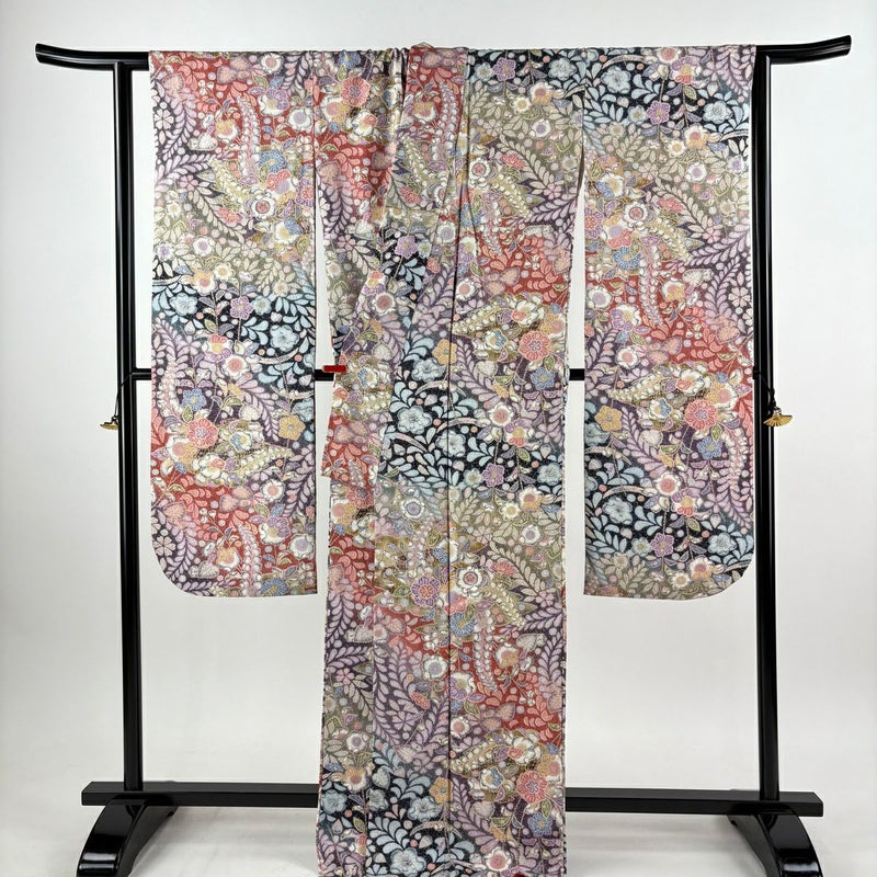 【着物ランク】逸品 【素材】正絹 【身丈】約170.5cm 【裄丈】約68cm 【袖丈】約112cm 【袖幅】約34cm 【前幅】約24cm 【後幅】約31cm 【サイズ】L 【着物仕立て】袷 【着用時期】10~5月 【状態ランク】ランクA 【着物着用シーン】成人式、謝恩会