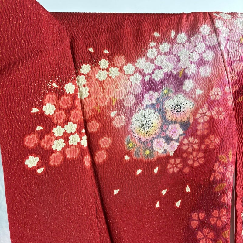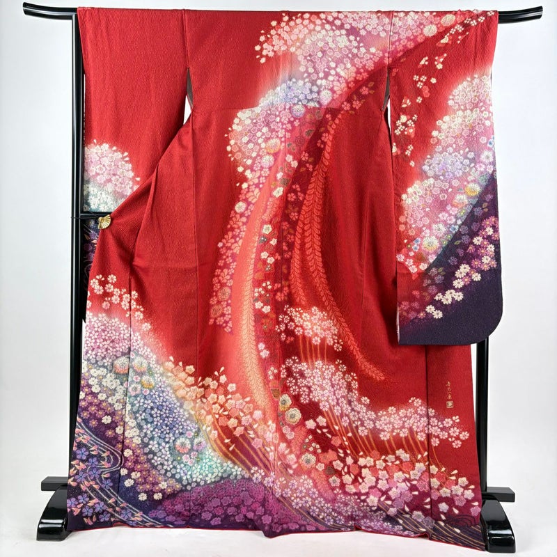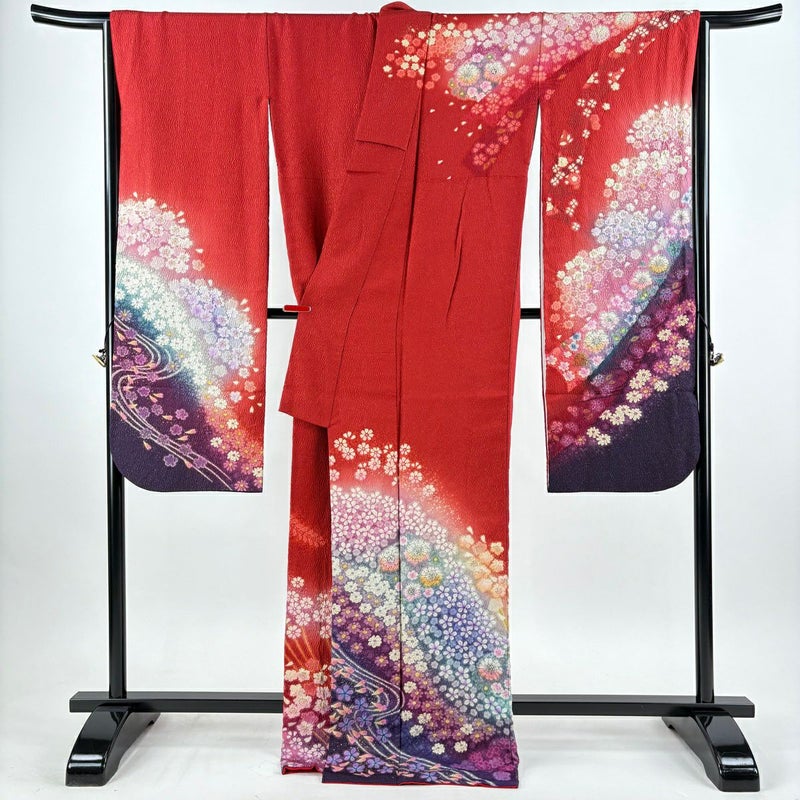 【振袖】 赤系 赤 逸品 A 約170cm~約179cm 裄丈67cm-68cm (L)size 袖丈91cm以上 30000- 美品 五万以下