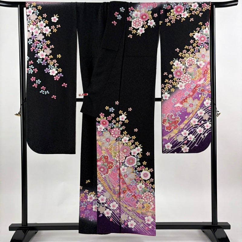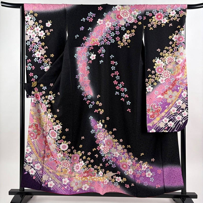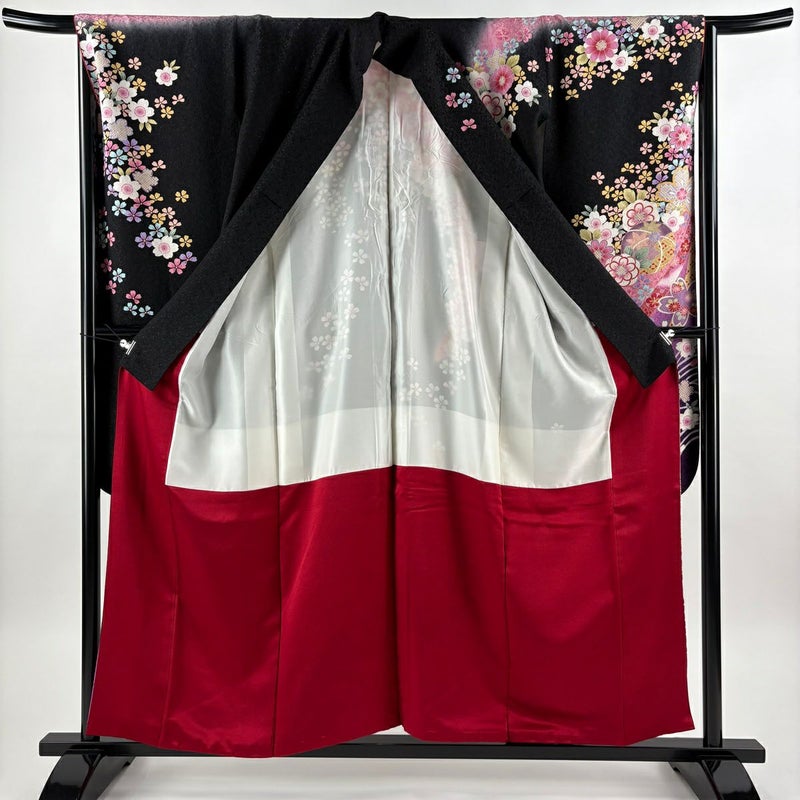 【振袖】 黒系 黒 逸品 B 約150cm~約159cm 裄丈66cm (M)size 袖丈91cm以上 30000- 五万以下