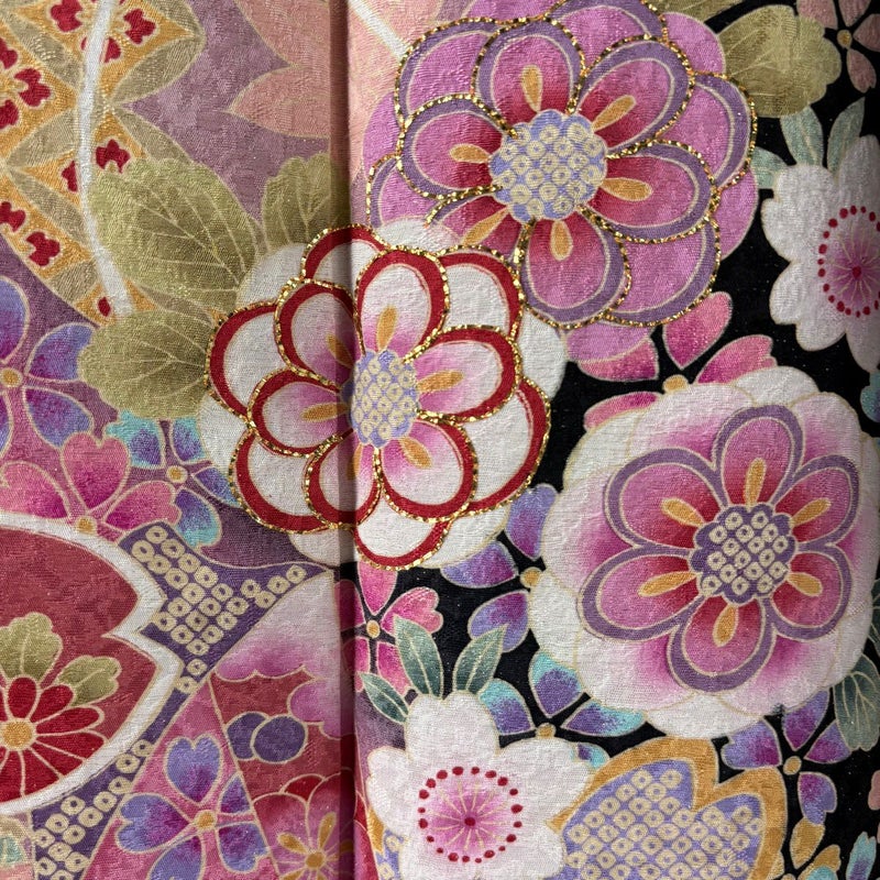 【着物ランク】逸品 【素材】正絹 【身丈】約155cm 【裄丈】約66.5cm 【袖丈】約105cm 【袖幅】約35cm 【前幅】約24.5cm 【後幅】約30cm 【サイズ】M 【着物仕立て】袷 【着用時期】10~5月 【状態ランク】ランクB 【着物着用シーン】成人式、謝恩会