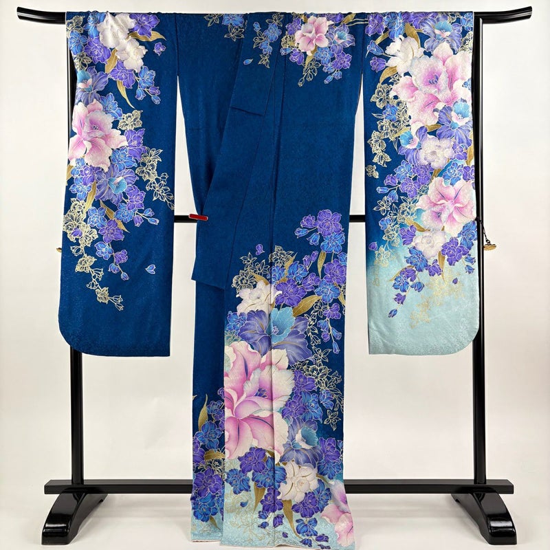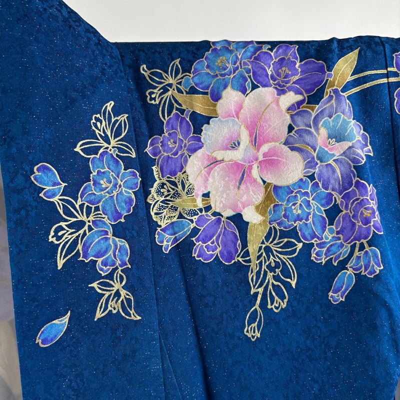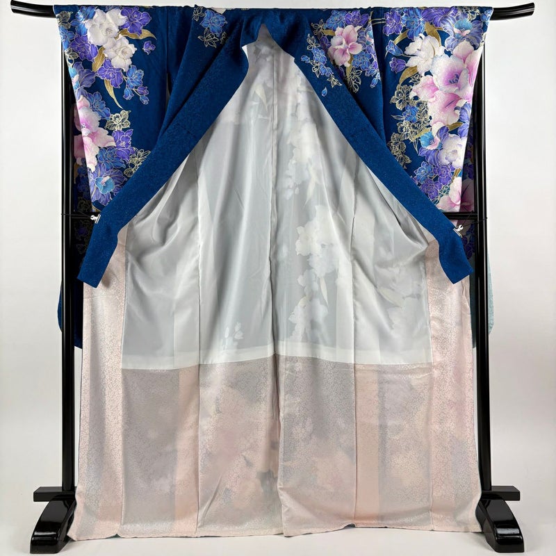 【振袖】 青系 藍色 逸品 B 約170cm~約179cm 裄丈69cm以上 (L)size 袖丈91cm以上 30000- 五万以下