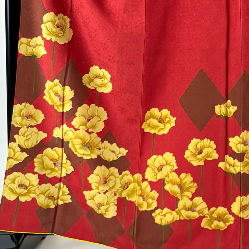 【振袖】 赤系 赤 名品 C 約160cm~約169cm 裄丈66cm (M)size 袖丈91cm以上 9990-29990 二万以下