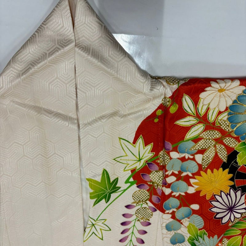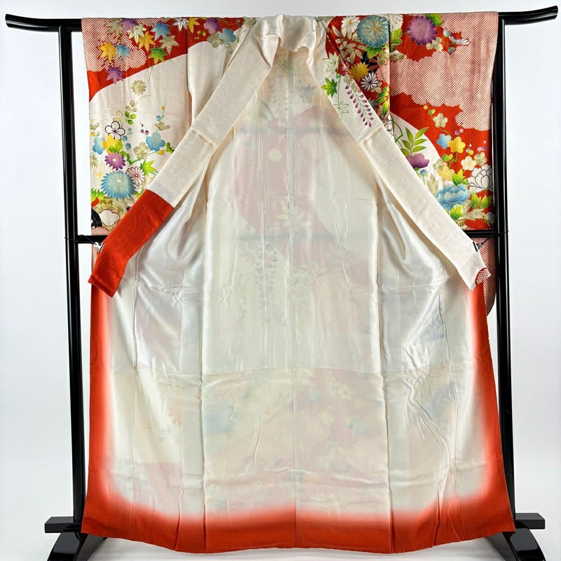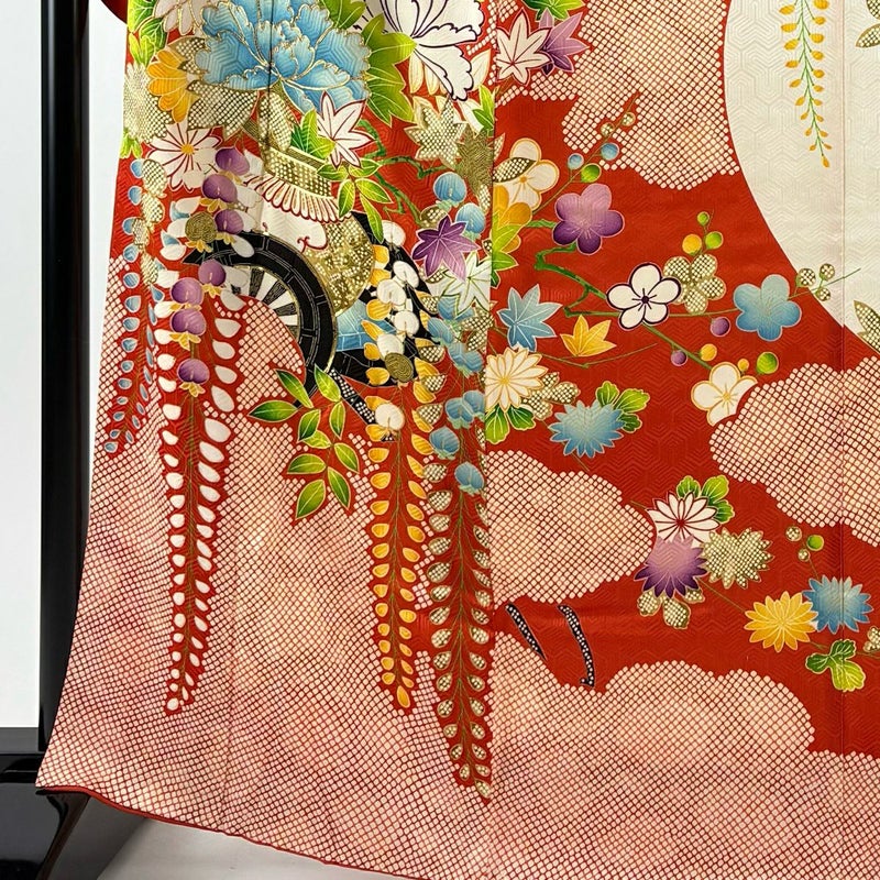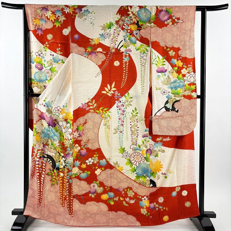 【振袖】 赤系 朱色 秀品 B 約160cm~約169cm 裄丈62cm以下 (S)size 袖丈91cm以上 7990-9980 二万以下