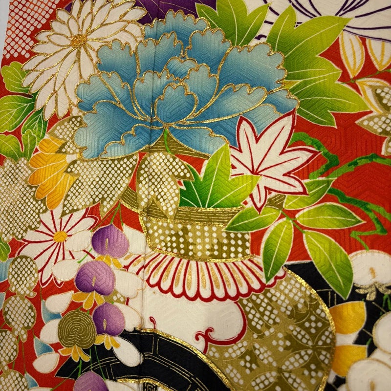未婚女性の第一礼装としてお使いいただける振袖でございます。 お好みの帯や小物と合わせて晴れの日に相応しい華やかな装いにいかがでしょうか。 ※身丈・裄丈の縫込みの長さは測っておりません。 右後袖に薄いシミ、衿周りに汚れ、左衿にシワがございます。 リユース品としては良い状態で、まだまだご活用頂けると思われます。 ※なお、厳しく商品の状態確認を行っておりますが、記載の汚れ以外にも見落とし箇所がある可能性がある旨ご了承いただけますと幸いです。 沢山の商品の中からご覧いただき誠にありがとうございます。