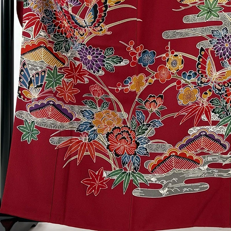 【振袖】 赤系 えんじ色 名品 B 約160cm~約169cm 裄丈65cm (M)size 袖丈91cm以上 9990-29990 二万以下