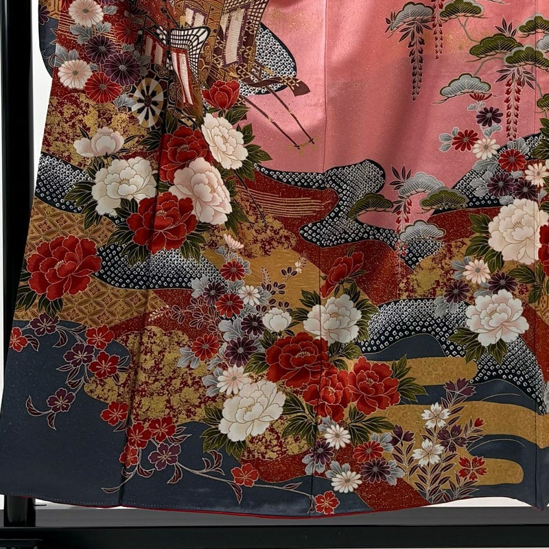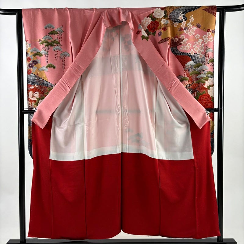 【振袖】 赤系 ピンク 秀品 B 約150cm~約159cm 裄丈62cm以下 (S)size 袖丈91cm以上 7990-9980 二万以下
