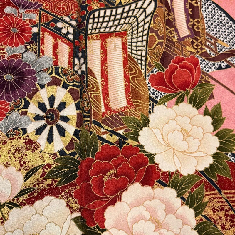 【着物ランク】秀品 【素材】正絹 【身丈】約155cm 【裄丈】約62.5cm 【袖丈】約103cm 【袖幅】約32.5cm 【前幅】約24cm 【後幅】約29.5cm 【サイズ】S 【着物仕立て】袷 【着用時期】10~5月 【状態ランク】ランクB 【着物着用シーン】成人式、謝恩会