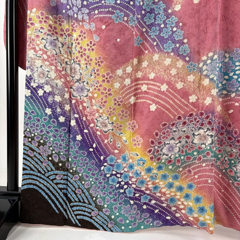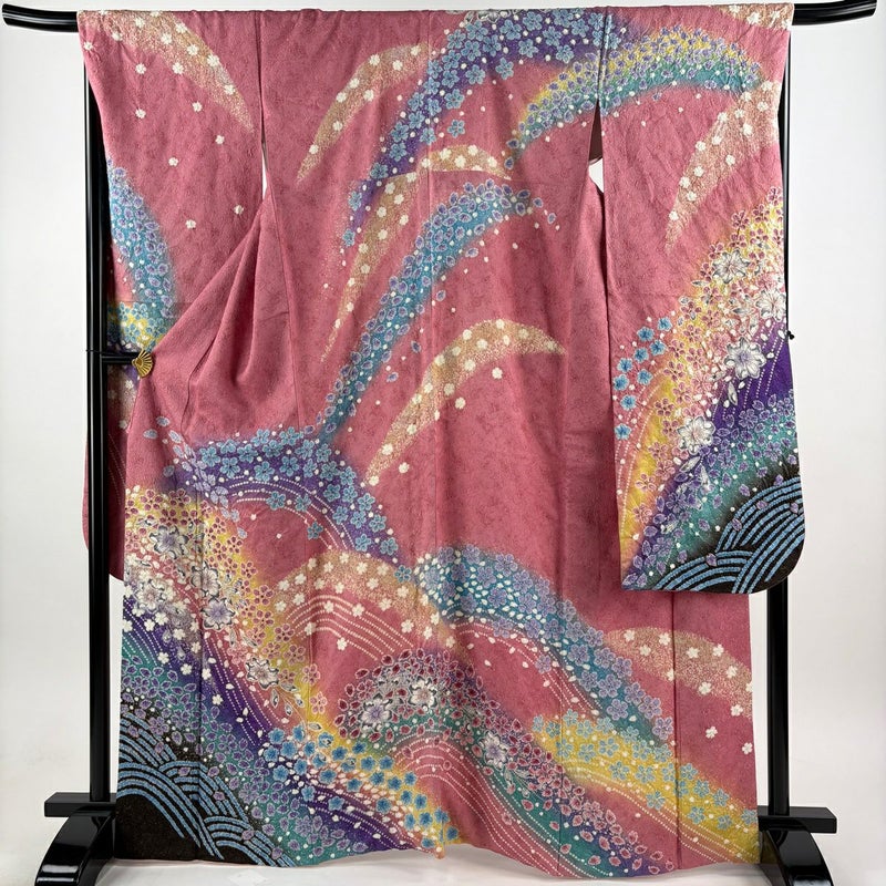【振袖】 赤系 ピンク 逸品 B 約160cm~約169cm 裄丈67cm-68cm (M)size 袖丈91cm以上 30000- 五万以下
