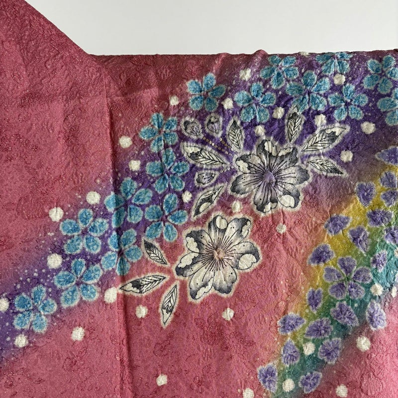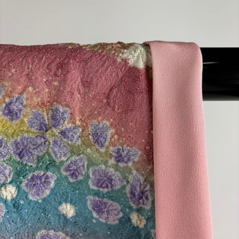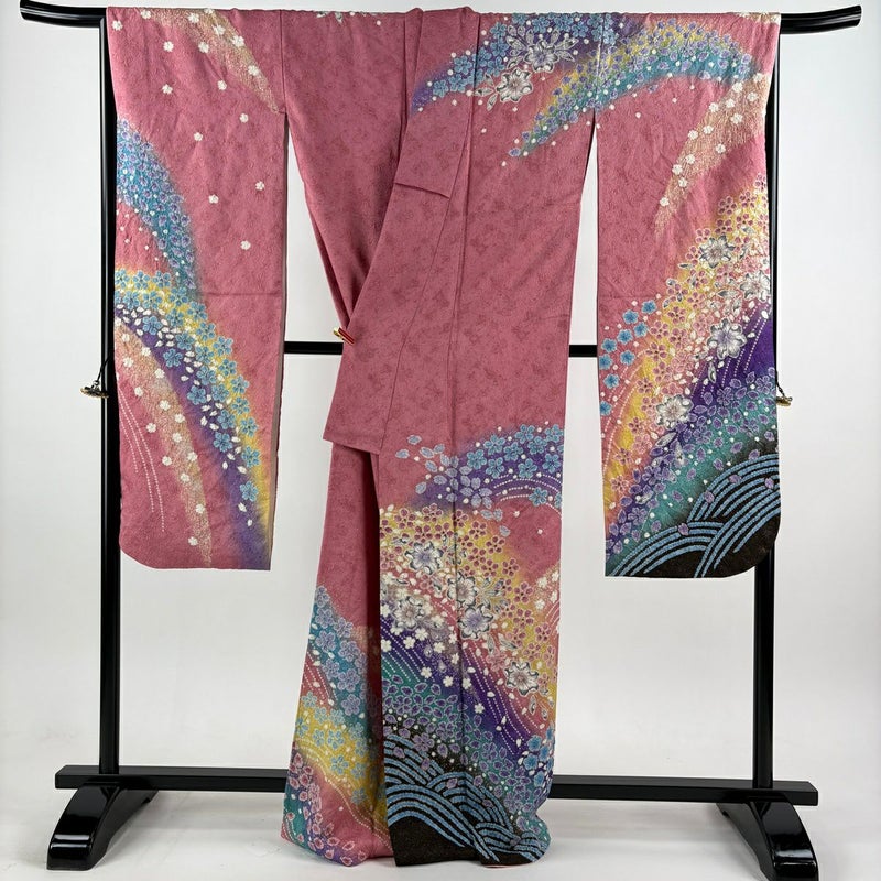 【着物ランク】逸品 【素材】正絹 【身丈】約167cm 【裄丈】約67cm 【袖丈】約113cm 【袖幅】約34.5cm 【前幅】約24cm 【後幅】約29cm 【サイズ】M 【着物仕立て】袷 【着用時期】10~5月 【状態ランク】ランクB 【着物着用シーン】成人式、謝恩会