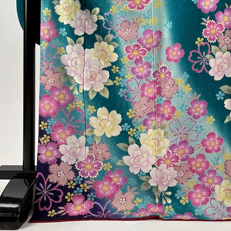 【着物ランク】逸品 【素材】正絹 【身丈】約175.5cm 【裄丈】約69.5cm 【袖丈】約114.5cm 【袖幅】約35.5cm 【前幅】約24cm 【後幅】約30cm 【サイズ】L 【着物仕立て】袷 【着用時期】10~5月 【状態ランク】ランクA 【着物着用シーン】成人式、謝恩会