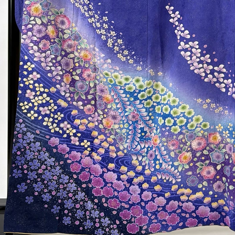 【振袖】 紫系 青紫 名品 B 約160cm~約169cm 裄丈67cm-68cm (L)size 袖丈91cm以上 9990-29990 二万以下