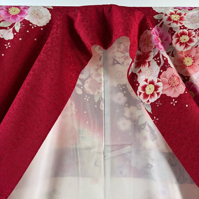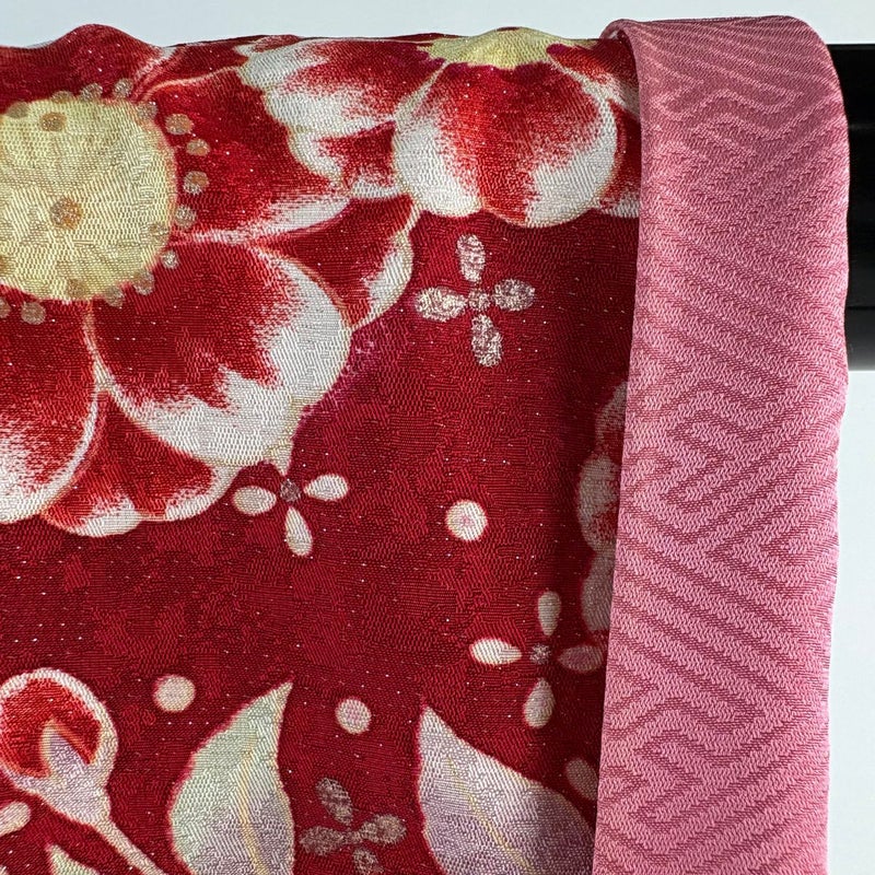【着物ランク】逸品 【素材】正絹 【身丈】約166cm 【裄丈】約66cm 【袖丈】約108cm 【袖幅】約34cm 【前幅】約24.5cm 【後幅】約30cm 【サイズ】M 【着物仕立て】袷 【着用時期】10~5月 【状態ランク】ランクB 【着物着用シーン】成人式、謝恩会