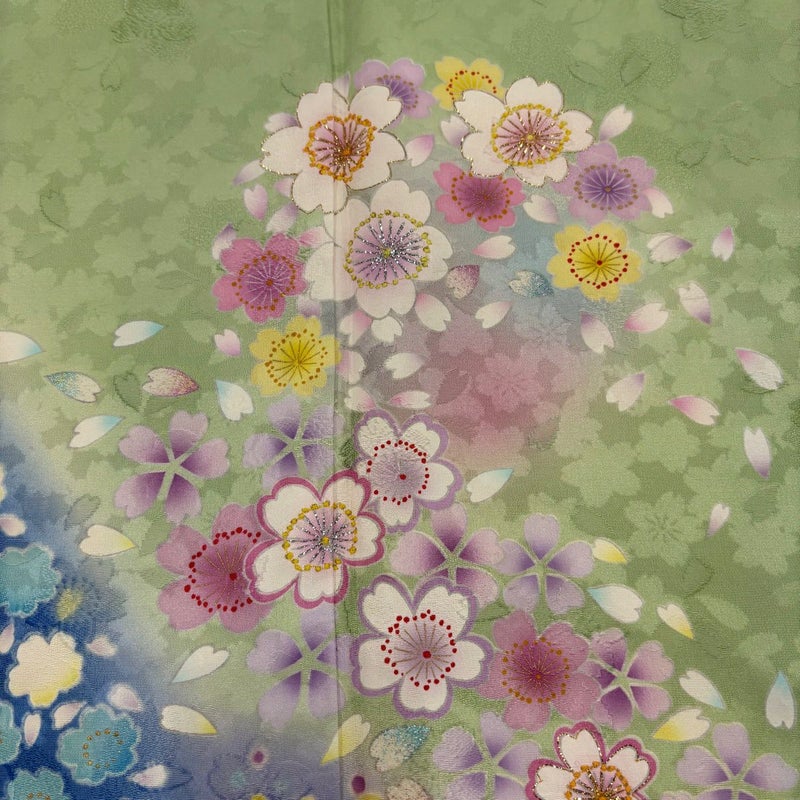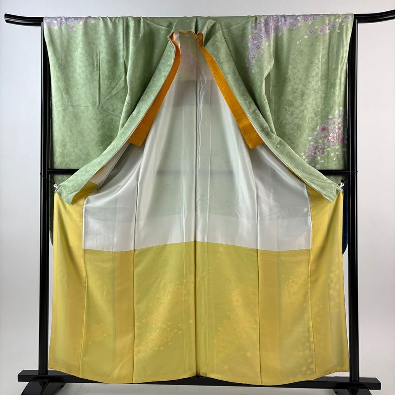 【振袖】 緑系 薄緑 名品 A 約160cm~約169cm 裄丈65cm (M)size 袖丈91cm以上 9990-29990 美品 二万以下