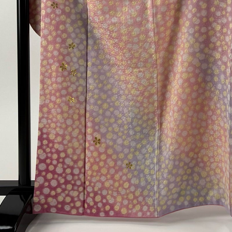 【着物ランク】逸品 【素材】正絹 【身丈】約165cm 【裄丈】約67cm 【袖丈】約109.5cm 【袖幅】約35.5cm 【前幅】約24cm 【後幅】約29cm 【サイズ】M 【着物仕立て】袷 【着用時期】10~5月 【状態ランク】ランクA 【着物着用シーン】成人式、謝恩会