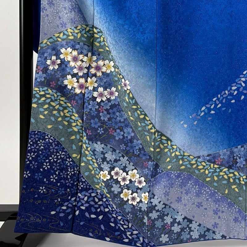 【振袖】 青系 青 逸品 B 約160cm~約169cm 裄丈67cm-68cm (L)size 袖丈91cm以上 30000- 五万以下
