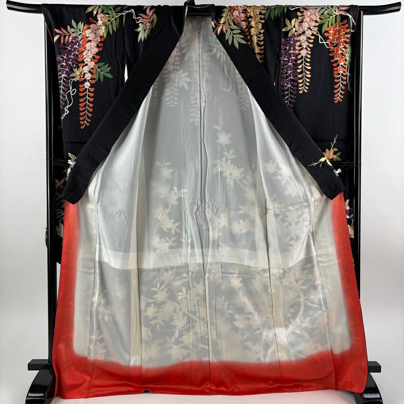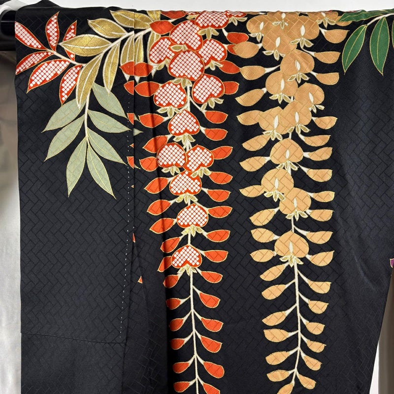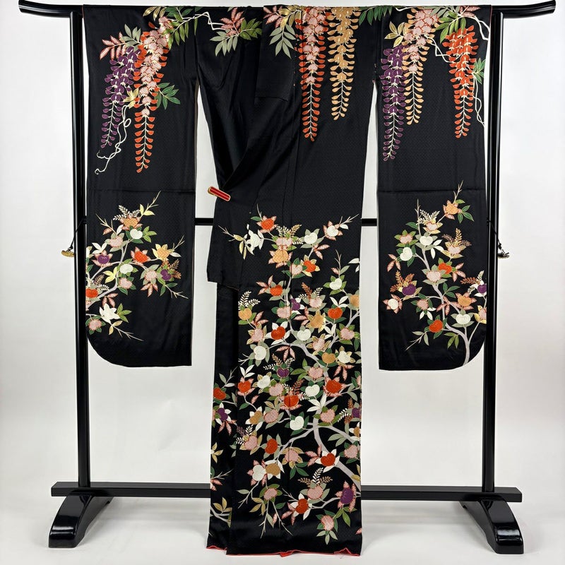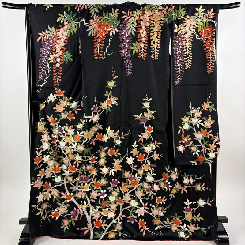 【振袖】 黒系 黒 逸品 B 約170cm~約179cm 裄丈69cm以上 (L)size 袖丈91cm以上 9990-29990 五万以下