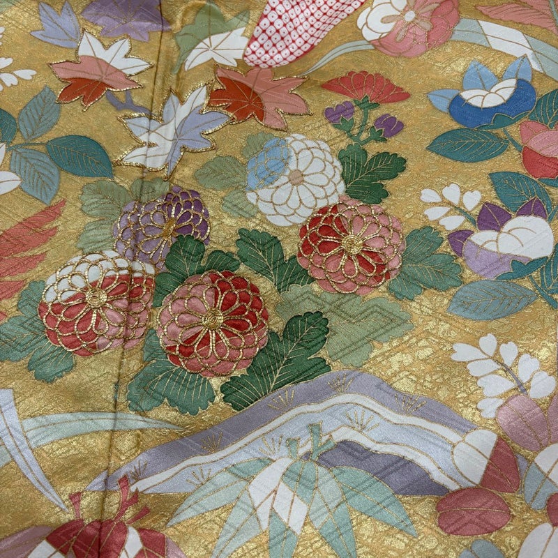 【着物ランク】秀品 【素材】正絹 【身丈】約159.5cm 【裄丈】約64cm 【袖丈】約107cm 【袖幅】約34cm 【前幅】約23.5cm 【後幅】約30.5cm 【サイズ】M 【着物仕立て】袷 【着用時期】10~5月 【状態ランク】ランクB 【着物着用シーン】成人式、謝恩会