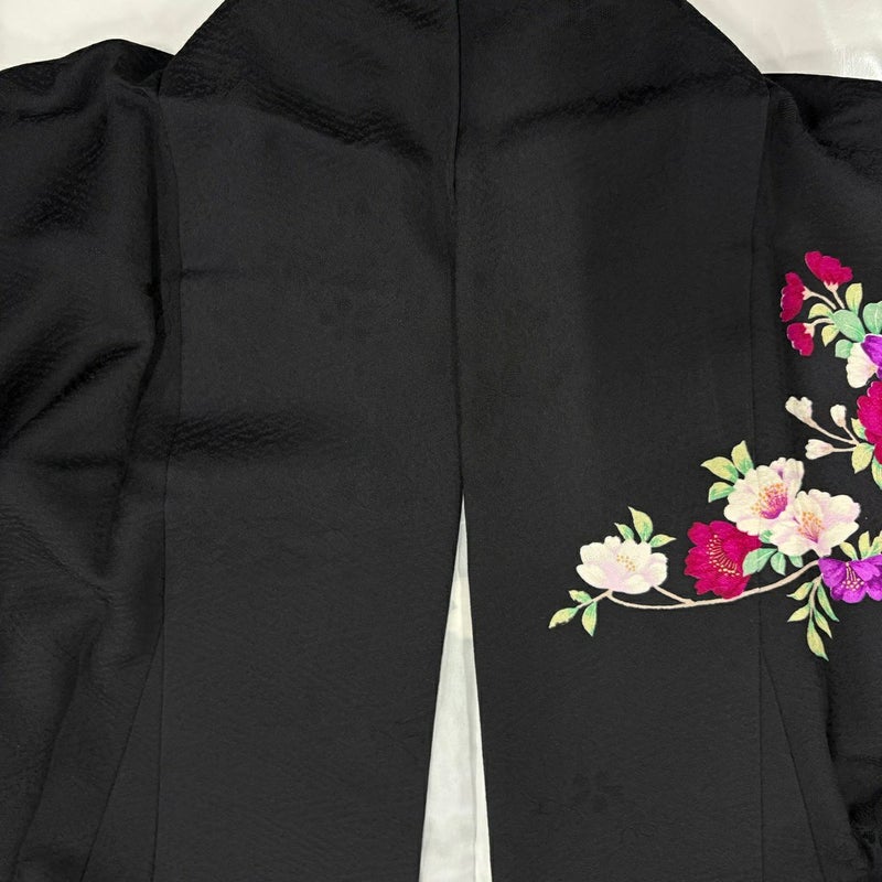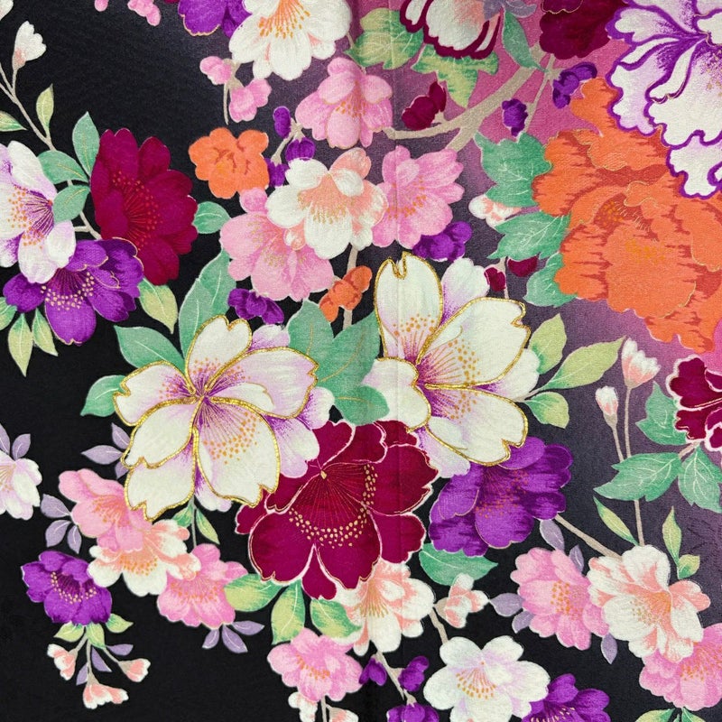 【振袖】 黒系 黒 秀品 A 約160cm~約169cm 裄丈67cm-68cm (M)size 袖丈91cm以上 9990-29990 美品 二万以下
