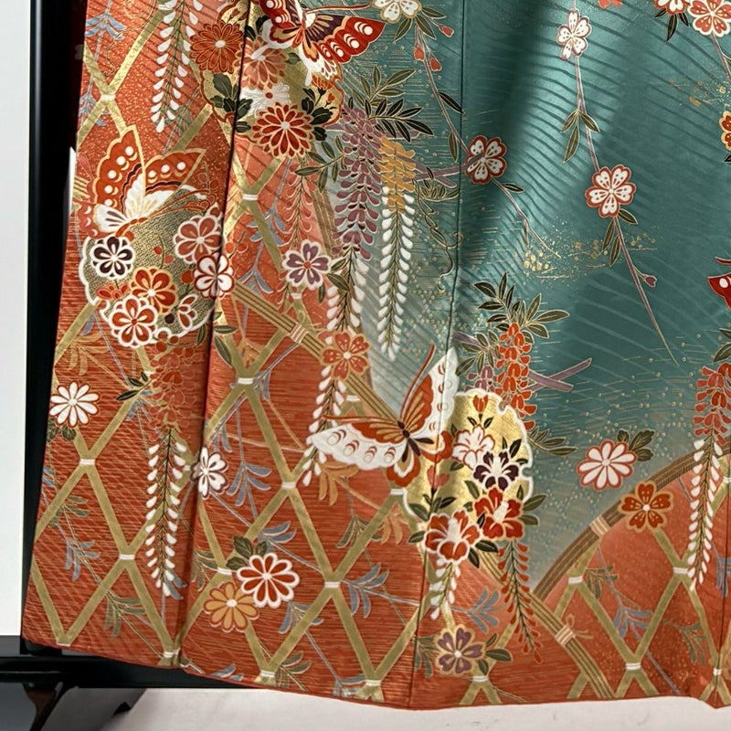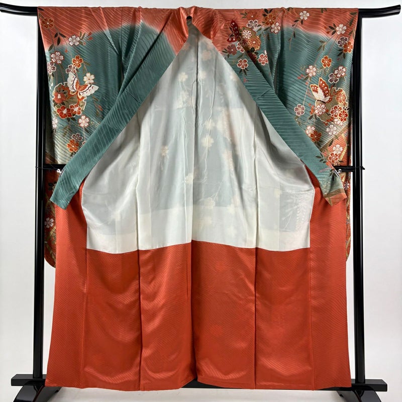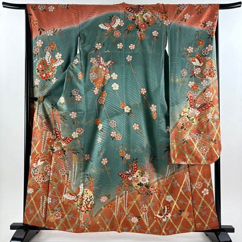 【振袖】 灰色系 灰緑 秀品 C 約160cm~約169cm 裄丈67cm-68cm (M)size 袖丈91cm以上 7990-9980 二万以下