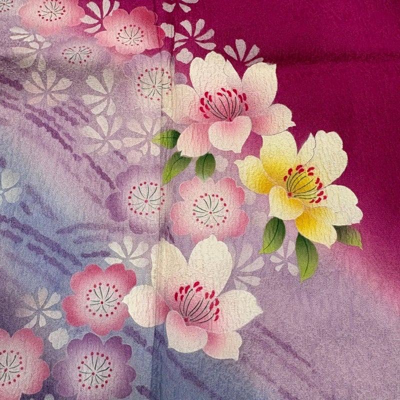【着物ランク】秀品 【素材】正絹 【身丈】約165.5cm 【裄丈】約66cm 【袖丈】約107.5cm 【袖幅】約33.5cm 【前幅】約25.5cm 【後幅】約30.5cm 【サイズ】M 【着物仕立て】袷 【着用時期】10~5月 【状態ランク】ランクB 【着物着用シーン】成人式、謝恩会