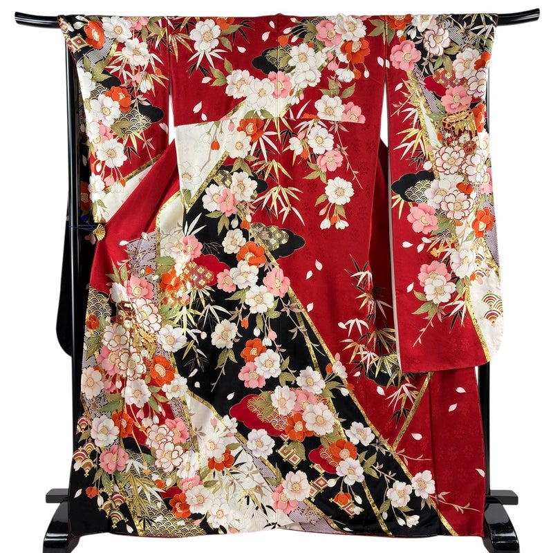 【振袖】 赤系 赤 名品 B 約170cm~約179cm 裄丈69cm以上 (L)size 袖丈91cm以上 9990-29990 二万以下