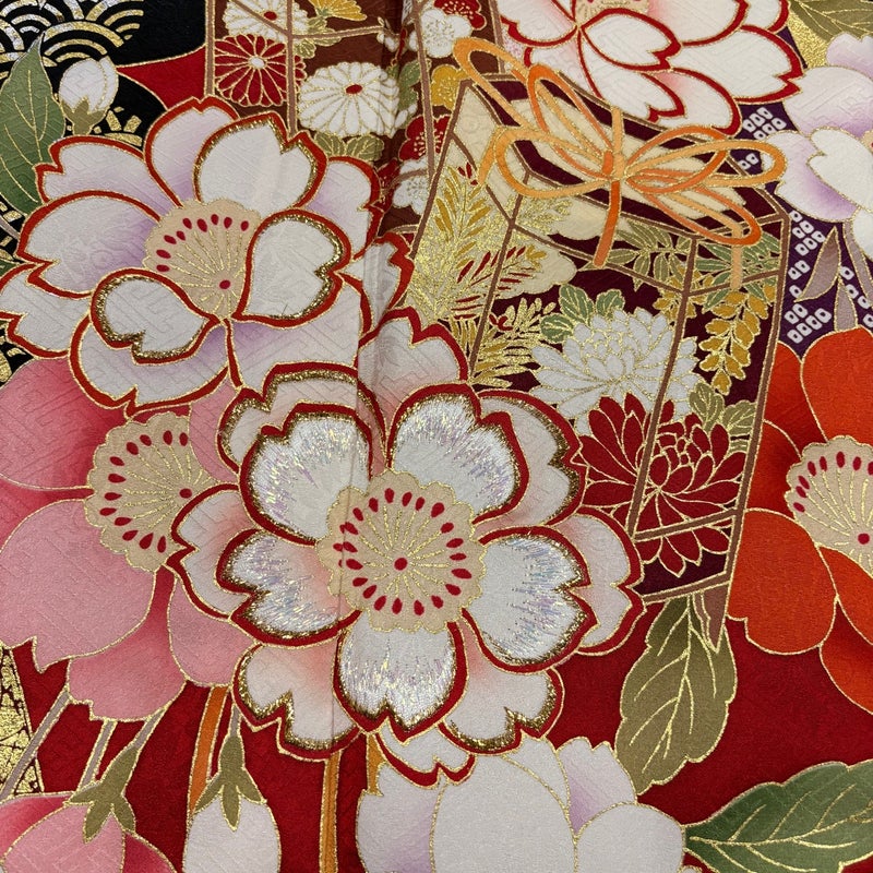 【着物ランク】名品 【素材】正絹 【身丈】約170cm 【裄丈】約69.5cm 【袖丈】約114cm 【袖幅】約36cm 【前幅】約24.5cm 【後幅】約30.5cm 【サイズ】L 【着物仕立て】袷 【着用時期】10~5月 【状態ランク】ランクB 【着物着用シーン】成人式、謝恩会