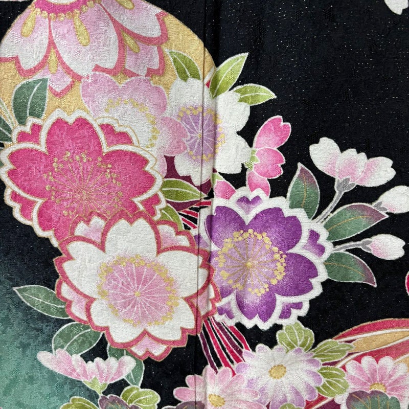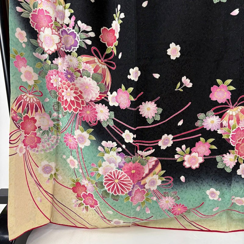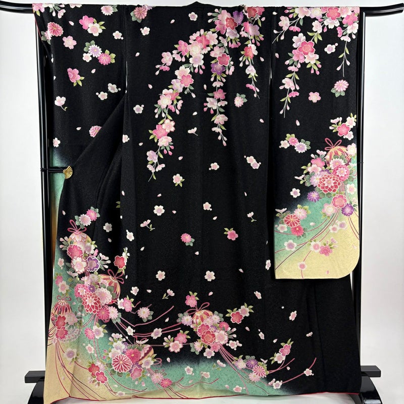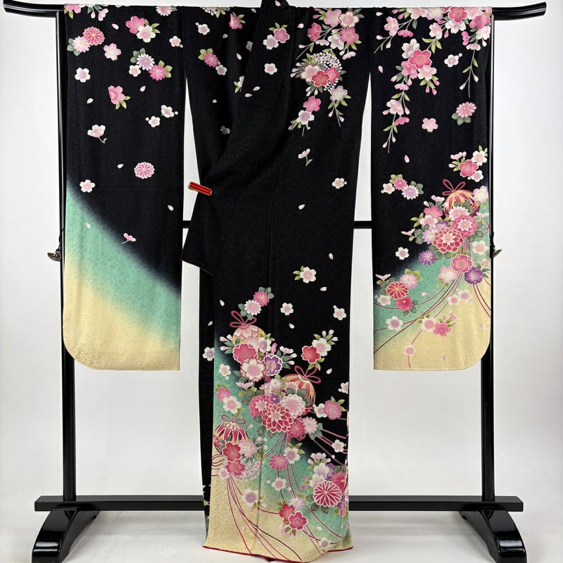 【振袖】 黒系 黒 逸品 B 約160cm~約169cm 裄丈69cm以上 (L)size 袖丈91cm以上 30000- 五万以下
