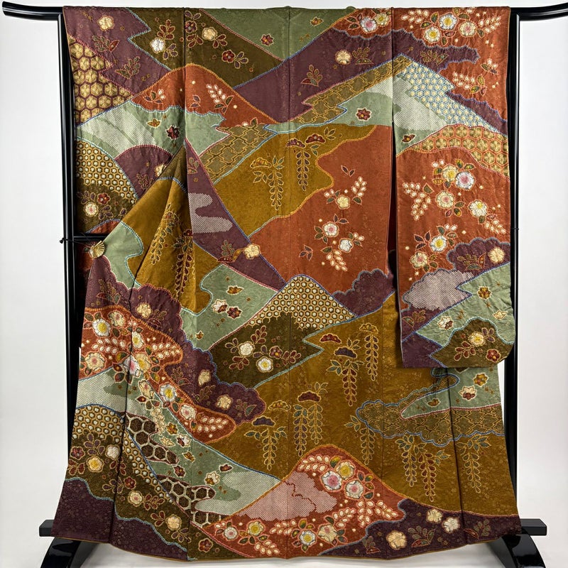 十日町の老舗、本格派辻が花で有名な翠山工房の作品です。 未婚女性の第一礼装としてお使いいただける振袖でございます。 お好みの帯や小物と合わせて晴れの日に相応しい華やかな装いにいかがでしょうか。 身丈を+1.5cm程、現在の長さから伸ばせます。 裄丈を+4.5cm程、現在の長さから伸ばせます。 衿周りや両袖口中に汚れがございます。 胴裏に生地の傷み、胴裏に点シミ、衿裏所々にホックシミがございます。 リユース品としては目立った染み傷なく、状態の良いお品でございます。 ※なお、厳しく商品の状態確認を行っておりますが、記載の汚れ以外にも見落とし箇所がある可能性がある旨ご了承いただけますと幸いです。 沢山の商品の中からご覧いただき誠にありがとうございます。