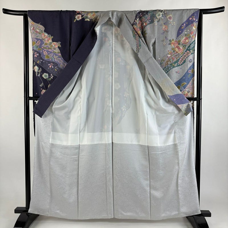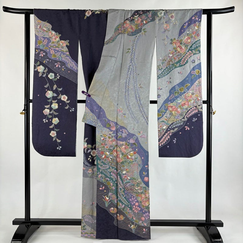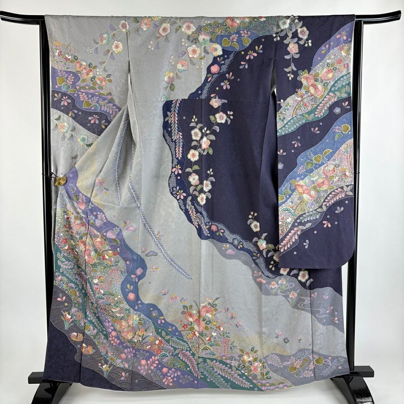 【振袖】 灰色系 灰色 逸品 A 約160cm~約169cm 裄丈63cm-64cm (M)size 袖丈91cm以上 30000- 美品 五万以下