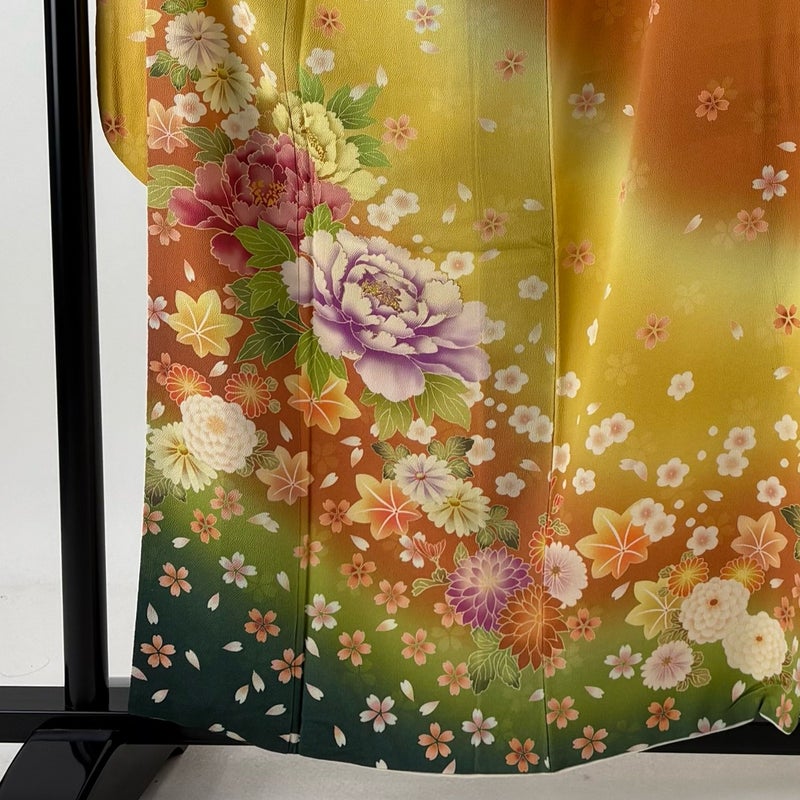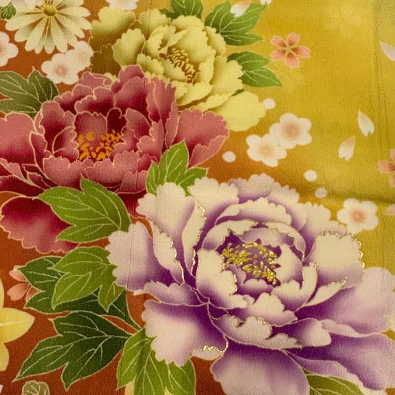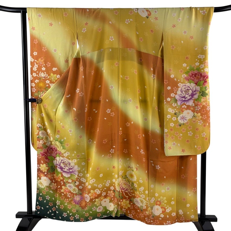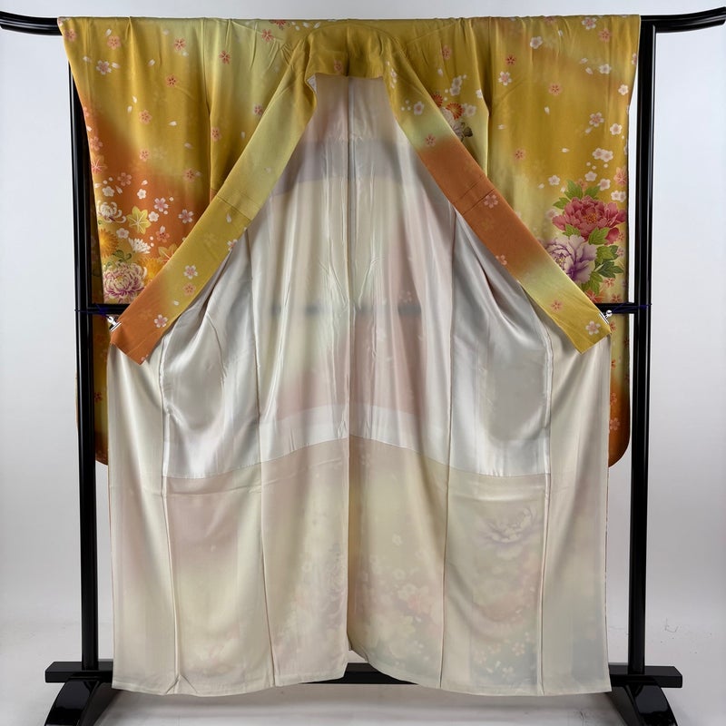 【振袖】 黄色系 黄色 名品 A 約150cm~約159cm 裄丈66cm (M)size 袖丈91cm以上 9990-29990 美品 二万以下