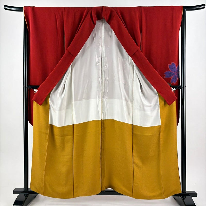 【振袖】 赤系 赤茶 秀品 B 約150cm~約159cm 裄丈65cm (M)size 袖丈91cm以上 7990-9980 二万以下