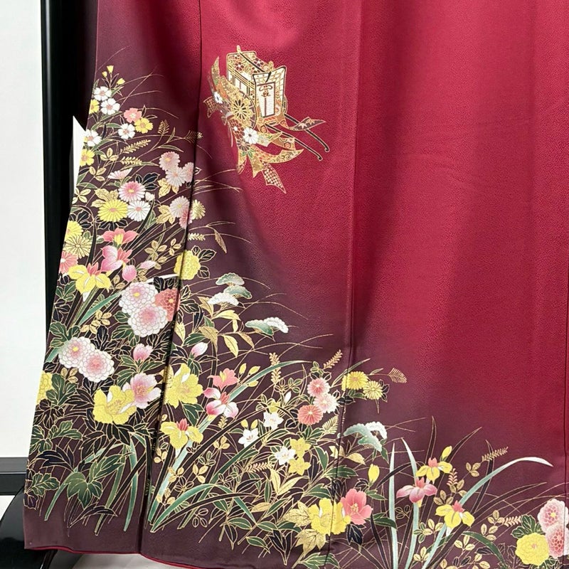 【着物ランク】秀品 【素材】正絹 【身丈】約169.5cm 【裄丈】約66.5cm 【袖丈】約116.5cm 【袖幅】約34.5cm 【前幅】約25cm 【後幅】約30.5cm 【サイズ】M 【着物仕立て】袷 【着用時期】10~5月 【状態ランク】ランクB 【着物着用シーン】成人式、謝恩会
