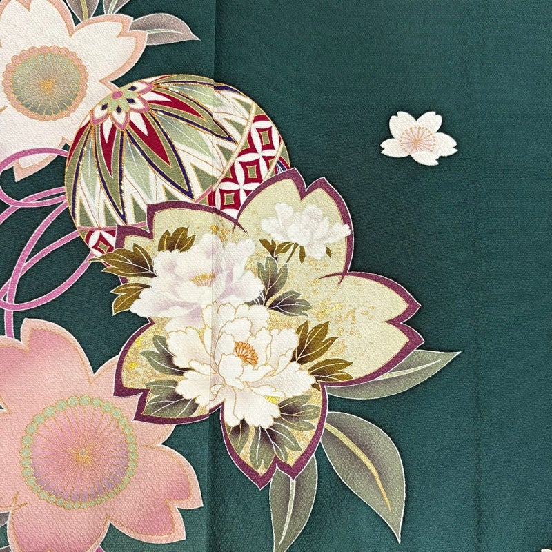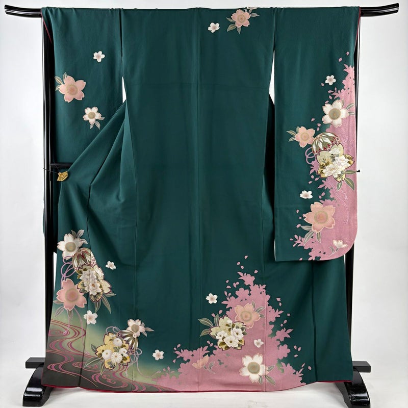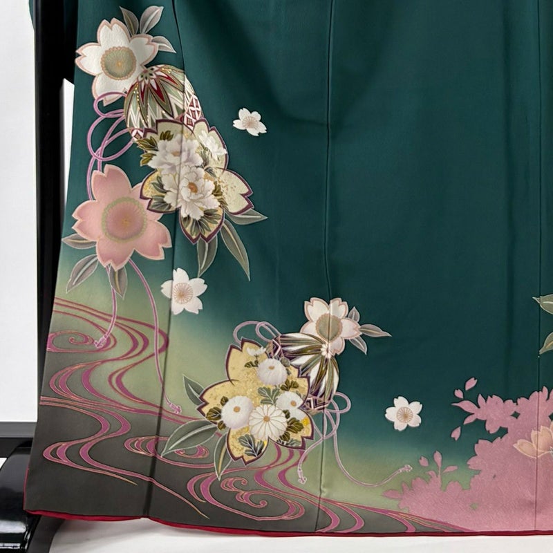 【振袖】 緑系 緑 秀品 B 約160cm~約169cm 裄丈67cm-68cm (L)size 袖丈91cm以上 7990-9980 二万以下