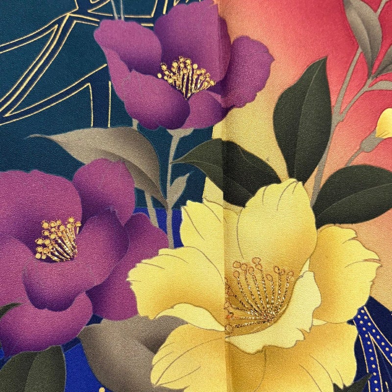 【着物ランク】秀品 【素材】正絹 【身丈】約168cm 【裄丈】約66cm 【袖丈】約106.5cm 【袖幅】約33cm 【前幅】約24cm 【後幅】約30cm 【サイズ】M 【着物仕立て】袷 【着用時期】10~5月 【状態ランク】ランクB 【着物着用シーン】成人式、謝恩会
