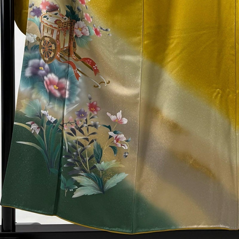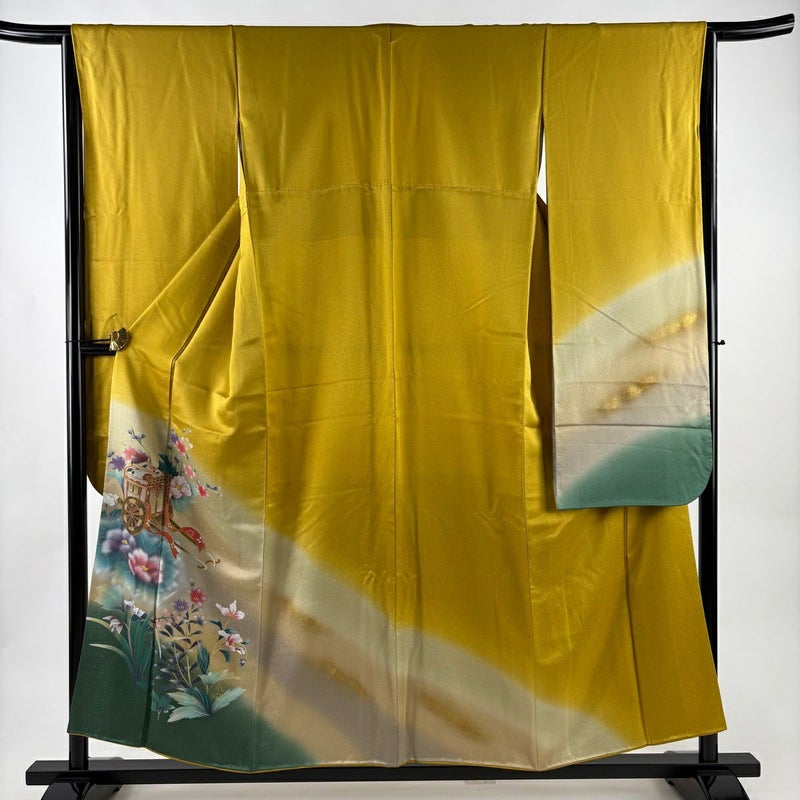 【振袖】 黄色系 からし色 秀品 A 約150cm~約159cm 裄丈65cm (M)size 袖丈91cm以上 9990-29990 美品 二万以下