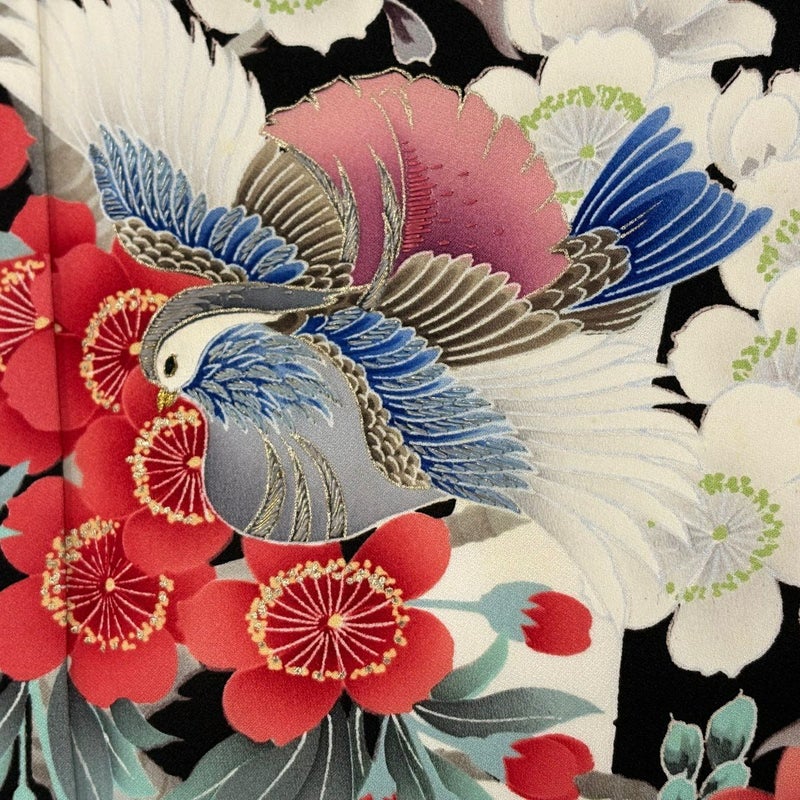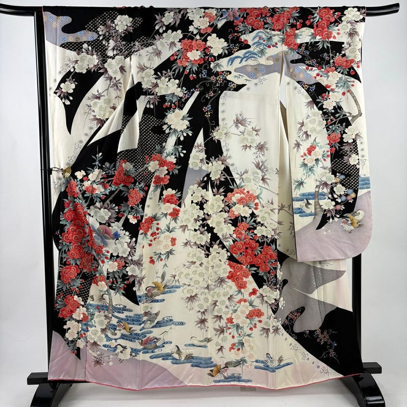 【振袖】 黒系 黒 秀品 B 約160cm~約169cm 裄丈67cm-68cm (L)size 袖丈91cm以上 7990-9980 二万以下