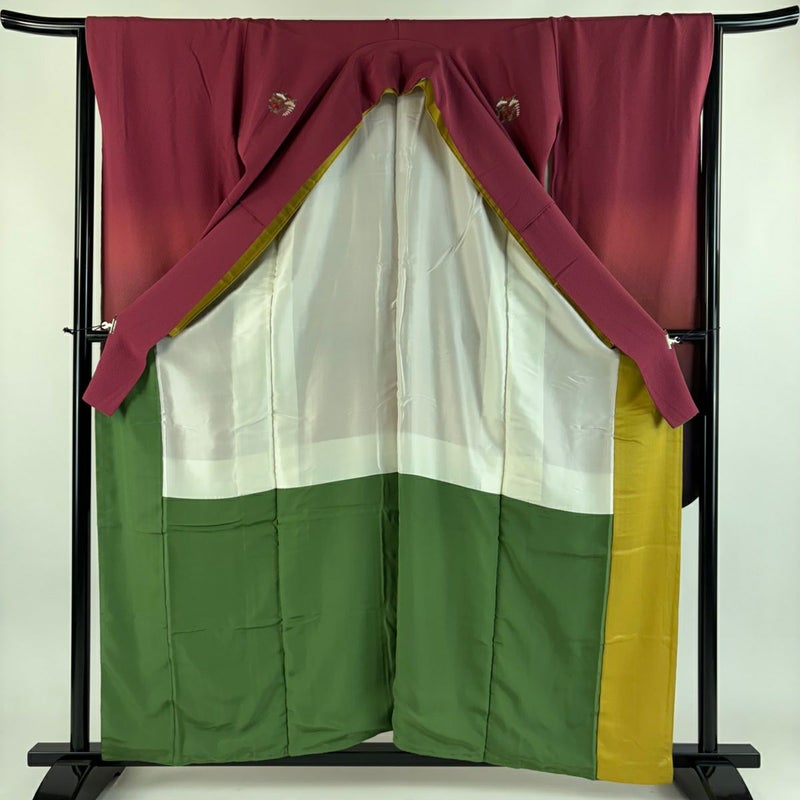 【着物ランク】秀品 【素材】正絹 【身丈】約159.5cm 【裄丈】約65.5cm 【袖丈】約107.5cm 【袖幅】約34cm 【前幅】約24cm 【後幅】約29.5cm 【サイズ】M 【着物仕立て】袷 【着用時期】10~5月 【状態ランク】ランクB 【着物着用シーン】成人式、謝恩会