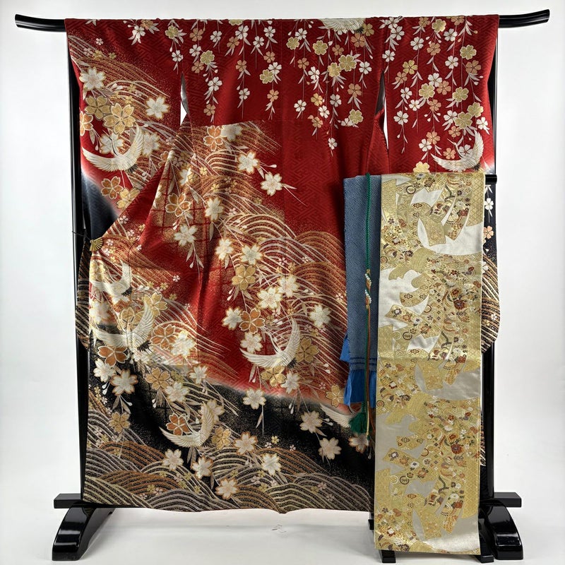 【振袖】 赤系 赤 秀品 B 約160cm~約169cm 裄丈67cm-68cm (L)size 袖丈91cm以上 9990-29990 五万以下