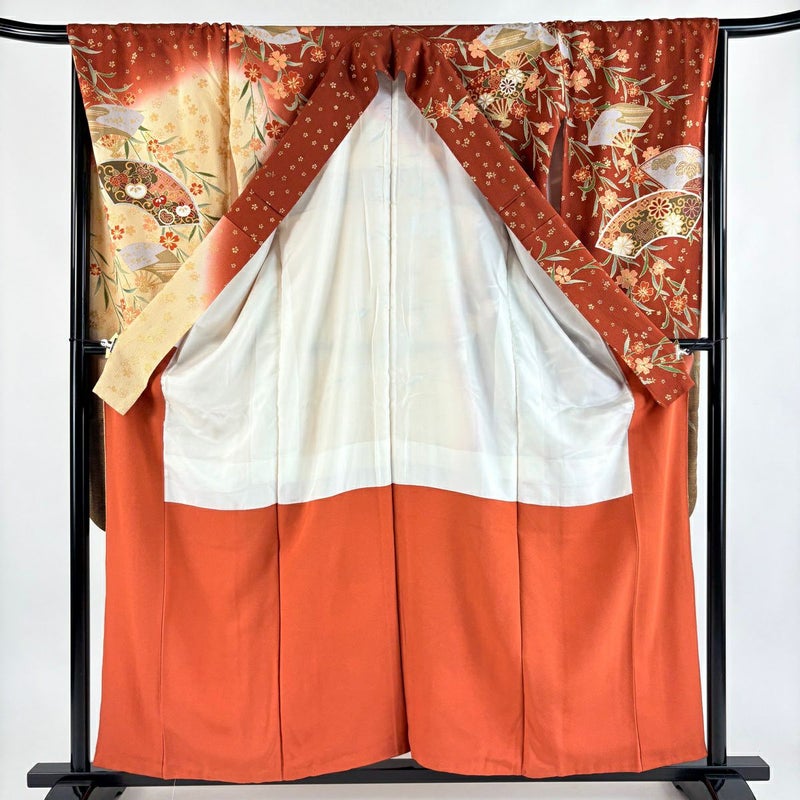 【振袖】 赤系 赤茶 秀品 B 約150cm~約159cm 裄丈66cm (M)size 袖丈91cm以上 7990-9980 二万以下