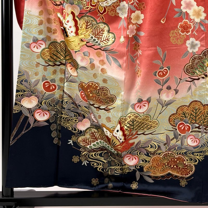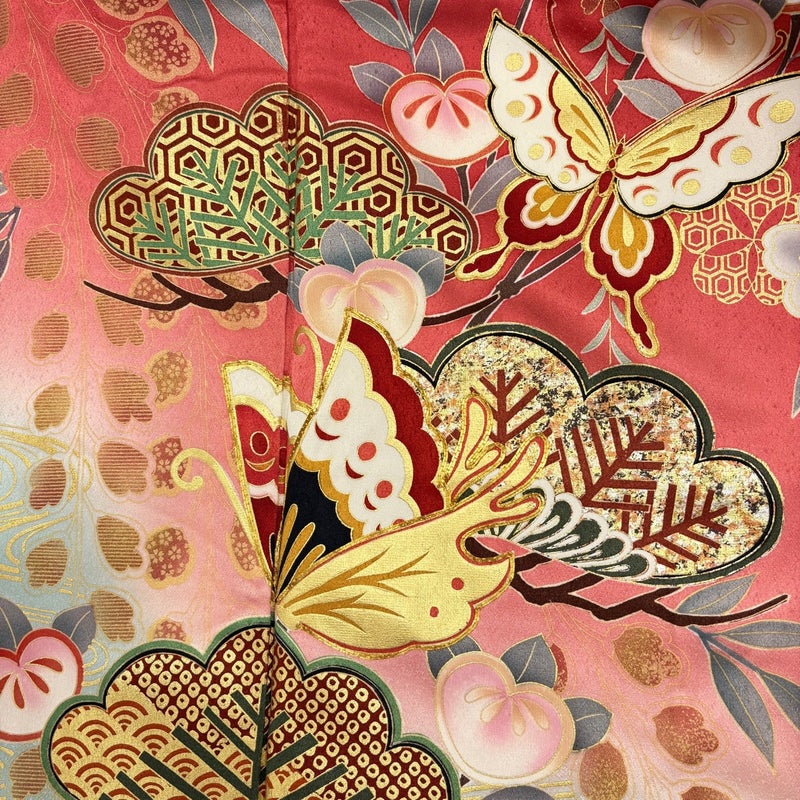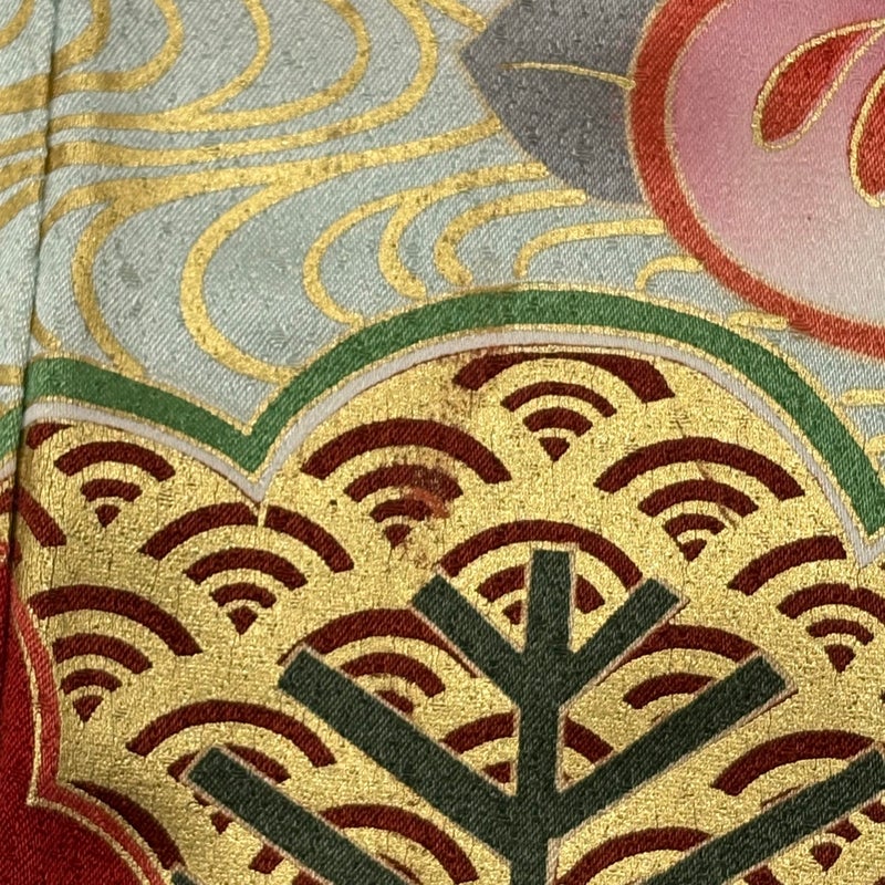【着物ランク】秀品 【素材】正絹 【身丈】約158.5cm 【裄丈】約62cm 【袖丈】約103cm 【袖幅】約32cm 【前幅】約24cm 【後幅】約30cm 【サイズ】S 【着物仕立て】袷 【着用時期】10~5月 【状態ランク】ランクB 【着物着用シーン】成人式、謝恩会