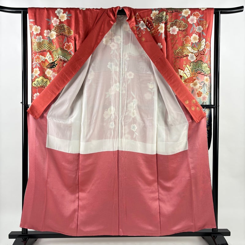 【振袖】 赤系 ピンク 秀品 B 約150cm~約159cm 裄丈62cm以下 (S)size 袖丈91cm以上 7990-9980 二万以下
